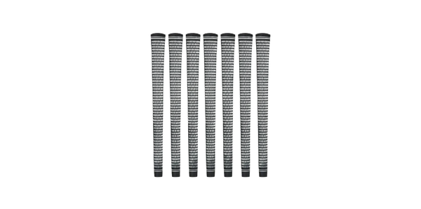 We manufacture our own in house grip, which comes in both standard and midsize. The grip is black with a white patterned imprint which helps to reduce torque and increase hand traction. There is no logo on the hand section of the grip, only on the butt end.