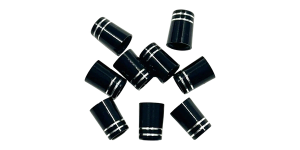 We use two stock ferrules, one for wedges and one for irons. These two ferrules are aesthetically the same and are designed to match. However, the iron ferrule measures 0.7 inches, while the wedge ferrule is slightly shorter. Both the iron ferrule and the wedge ferrule are black with two silver rings. Our custom ferrules are the longest measuring approximately 1 inch.